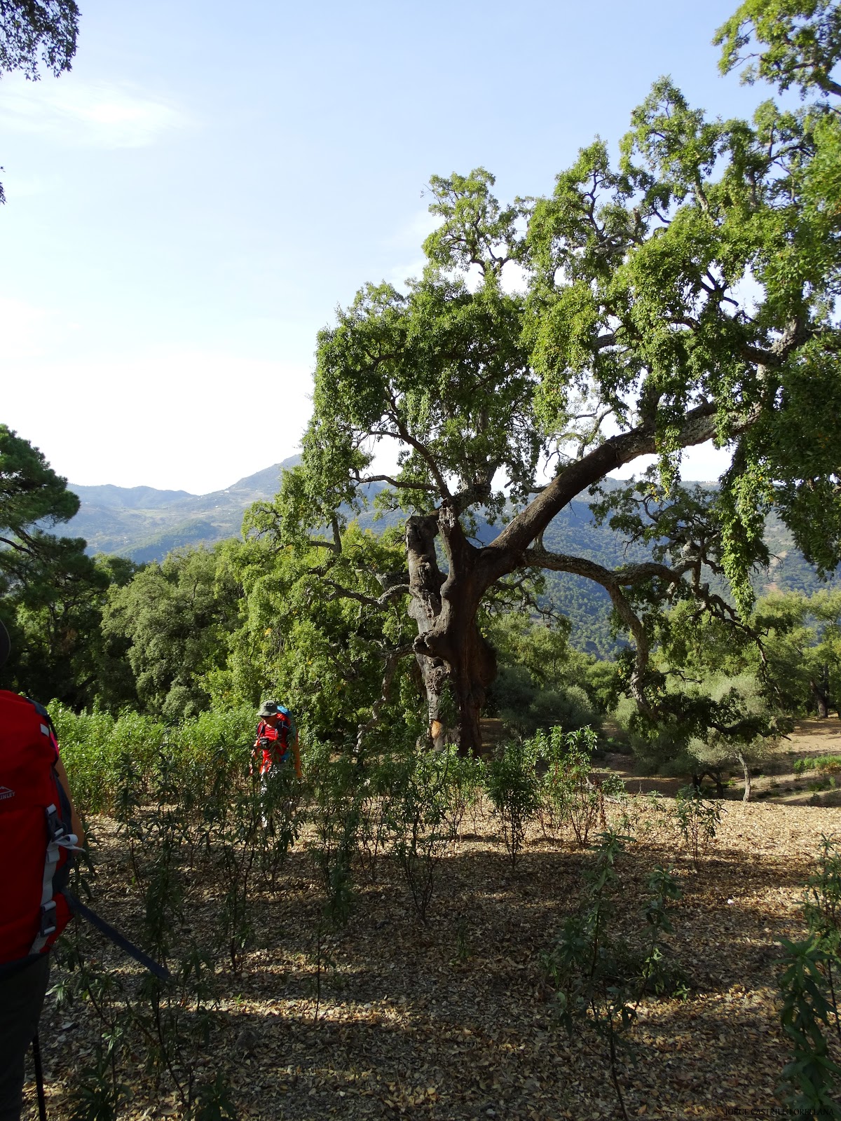 Próximo a la iglesia de Genalguacil y pasando por una zona habilitada para aparcamientos nos encontramos unas balizas que nos indica el sendero a tomar en dirección sur, acompañados de alcornoques buen porte y castaños en su mayoría con el característico color cobre típico de la época otoñal.